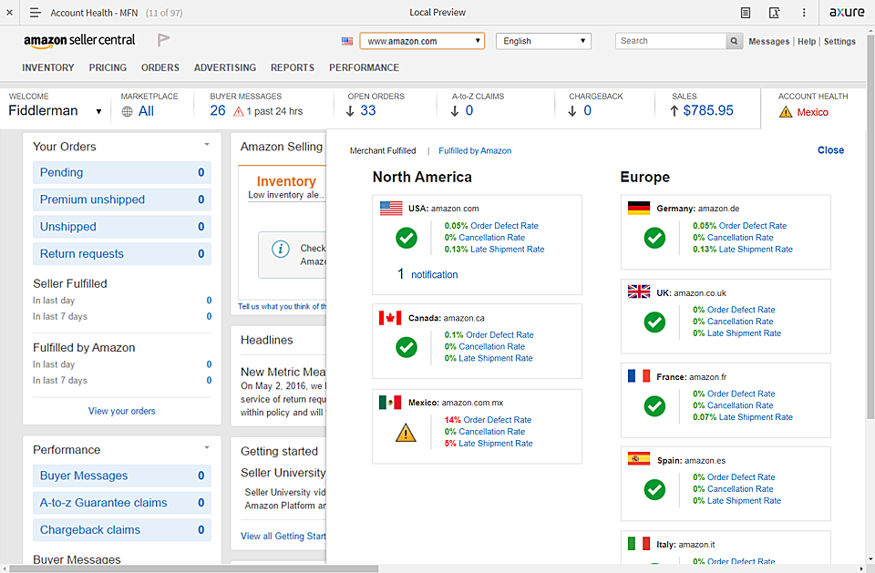 The KPI bar brought together key performance indicators from all accounts on the home page allowing the seller to know what was going on in their business easily.